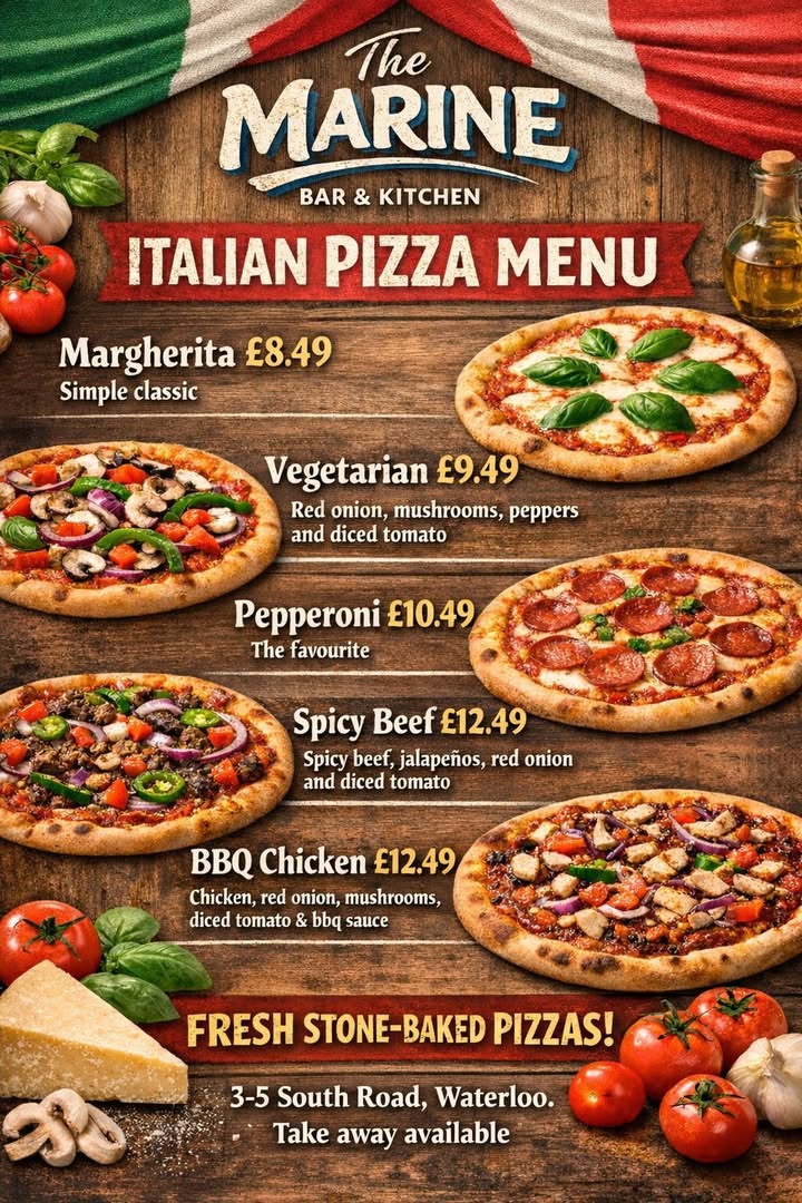 Have you tried one of our Italian-inspired pizzas yet? 🍕 Our homemade, stone-baked pizzas are made fresh and full of flavour. Perfect for the match ⚽️ Sharing with friends 🍻 Takeaway available – perfect for a cosy night in! 🍕🍕 #ItalianInspired #StoneBakedPizza #HomemadePizza #FreshlyMade #PizzaLovers #TakeawayAvailable #FoodieFavorites #supportlocal #publifeperfected #themarinebarandkitchen #whatsonliverpool #GreatFoodGreatDrinks #keepitlocal #dealsdealsdeals #localpub #lunchideas #januaryoffers #drinkswithfriends
