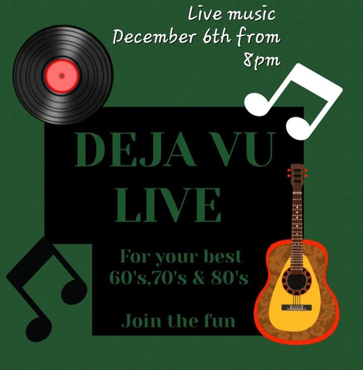 Join us Saturday 6th December for live music performed by Deja Vu from 8pm 🍻🕺🍻