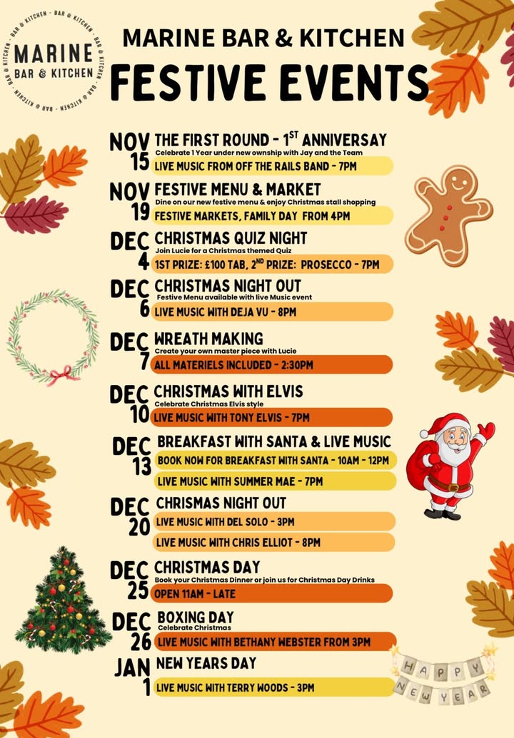 🎄🍻🎄 Festive season is here 🎄🍻🎄 We have a packed schedule we everything you need to keep you coming back!! 🎉🎉 Starting tomorrow with our festive menu launch and craft market showcase 🎊🎊 Pub is starting to look very festive 🎅🎅 If there are any events you are wanting to book for, give us a call. Come speak to one of the team or book via our website https://www.themarine.pub/ 🎉🎊🎅 This is going to be a Christmas to remember 🎅🎊🎉 #livemusic #coffeetime #FestiveVibes2025 #googlereviews5star #dogfriendlypub #anniversarycelebration #CheersToOneYear #christmasmagic #breakfastwithsanta #wreathmaking #ChristmasQuiz #karaoke #LiveSportLivesHere #santaclaus #santastophere