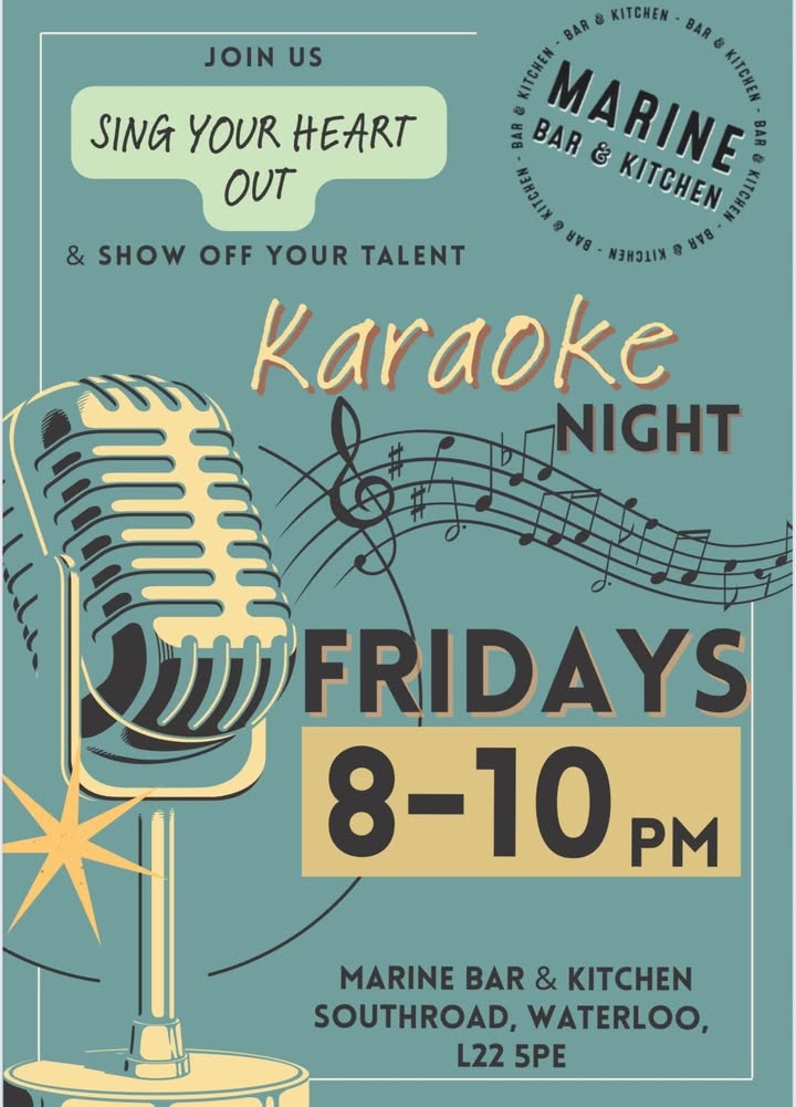 🎤 KARAOKE FRIDAY 🎶 📍 Marine Bar & Kitchen 🕗 8:00 PM Start 🔥 Drink Specials All Night • 🍹 2 Cocktails – £10 • 🥃 2 Shots – £5 • 💣 2 Bombs – £6 • 🍾 Prosecco – £16.95 a Bottle • 🍺 Fosters – £3 • 🥂 Doubles – £5.25 Bring your friends, warm up those vocal cords, and get ready for a night of music, fun & amazing drink deals!