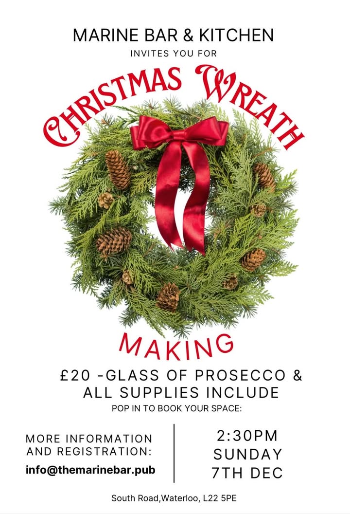 🎄✨ Christmas Wreath Making Workshop ✨🎄 Join us on Sunday 7th December at 2:30pm for a festive and fun afternoon creating your very own Christmas wreath! 🎁🌿 🎟 £20 per person 🧵 All supplies included 🥂 Includes a glass of prosecco Spaces are limited – message us to book now! Let’s get creative and kick off the festive season together! 🎅🎨 #ChristmasWreath #WreathWorkshop #FestiveFun #Christmas2025 #CraftWorkshop #ProseccoAndCrafts #ChristmasDecor #GetCreative #HandmadeWithLove #BookNow
