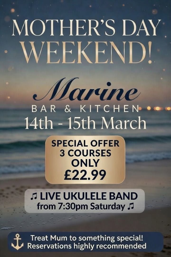 🌸 Mother’s Day Weekend – 14th & 15th March! 🌸 Treat Mum to something special this Mother’s Day weekend — enjoy a delicious 3-course meal for just £22.99! 💐 🎶 Saturday 14th March Celebrate with great food and live music from a very talented ukulele band from 7:30pm — the perfect way to make memories. ⚽ Sunday 15th March Catch all the live sports action! 📺 Arsenal vs Everton – 2pm 📺 Liverpool vs Tottenham – 4:30pm Book your table today and make it a weekend to remember! 💕 https://www.themarine.pub/ #MothersDayWeekend #MothersDay2026 #FamilyTime #LiveMusic #UkuleleBand #SundaySports #PremierLeague #FootballFans #Arsenal #Everton #Liverpool #Tottenham #WeekendVibes #GoodFoodGoodTimes