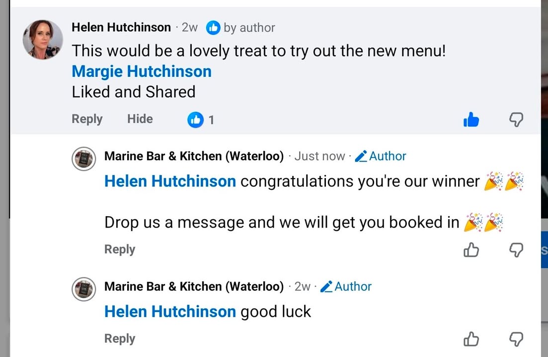 Congratulations Helen Hutchinson you are our competitions winner 🏆 🥇 #newmenu #supportyourlocal #FoodLovers #CountdownToDelicious